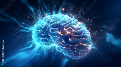 Concept of an Active Human Brain on a Dark Background. Generative AI