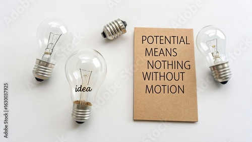 Concept of Creativity and Innovation with Light Bulbs and Quote Card