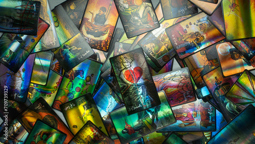 Concept of divination, magic and esotericism. Cards candle on cartomancy table.