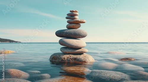 Concept of harmony and balance. Balance stones against the sea.