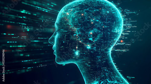 Concept of human head and brain related to deep learning and AI technology.