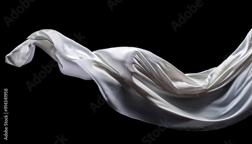 Concept of long flying white silk cloth on black background