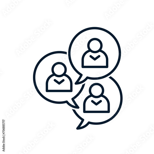 Concept of online communication, business chat, target audience. Vector linear icon isolated on white background.
