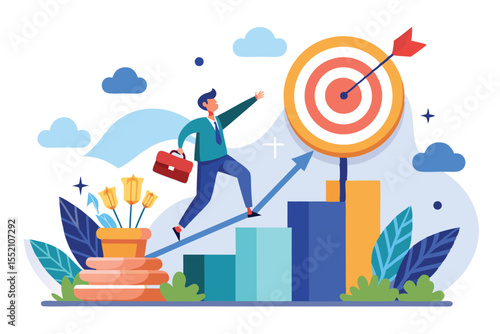 Concept of success and achievement illustrated through growth and development in a vibrant business environment with a clear target