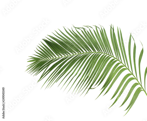 concept summer with green palm leaf from tropical . frond floral leaves branches tree isolated on white pattern background. flat lay, top view.