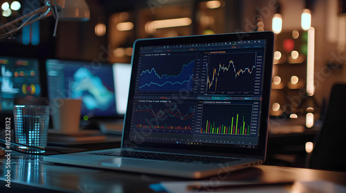 Concept with laptop computer, charts diagrams, graphs and place for text