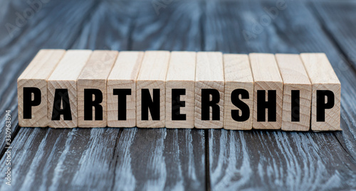 concept word PARTNERSHIP on cubes on a beautiful gray blue background