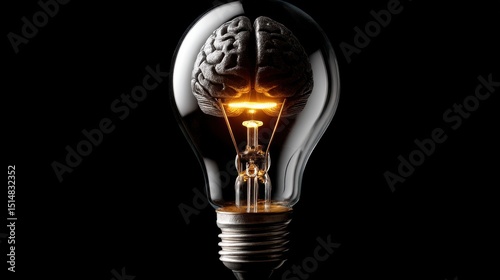 Conceptual art of a light bulb inside a brain symbolizing thought and innovation, abstract composition