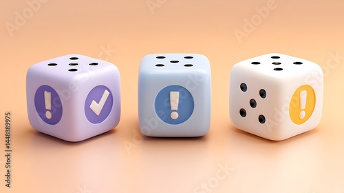 Conceptual Dice Displaying Risk and Approval in Pastel Tones
