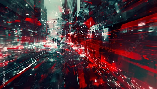 Conceptual Emergency Scenario with Flashing Lights and City in Disarray