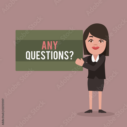 Conceptual hand writing showing Any Questions question. Business photo showcasing Asking for inquiry Interrogation Clarification.