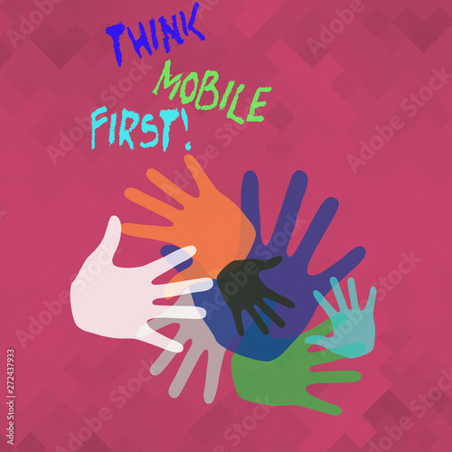 Conceptual hand writing showing Think Mobile First. Concept meaning Handheld devises marketing target portable phones first