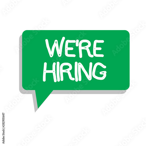 Conceptual hand writing showing We re are hiring. Business photo text Job vacancy Manpower polling Recruiting Available position.