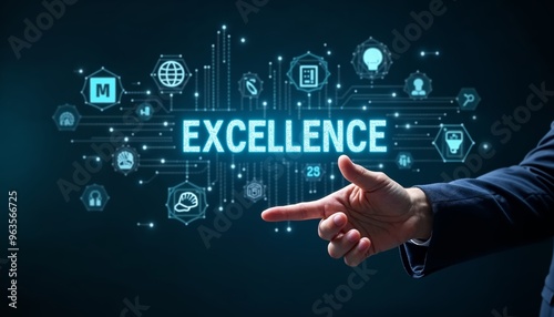 Conceptual Image Representing Excellence with Digital Icons and Human Gesture
