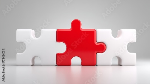 Conceptual representation incomplete white and red puzzle pieces symbolic of missing solution challenge and completion.