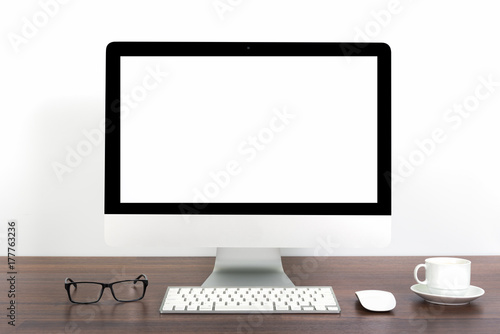Conceptual workspace, Laptop and mouse isolated blank screen