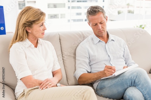 Concerned therapist talking with female patient