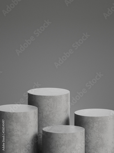 Concrete pedestal for product display with grey background. 3d rendering.