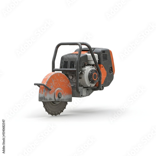 Concrete Saw Close-up: A rugged concrete saw stands, showcasing its robust design and industrial functionality. The image highlights the power and precision of this essential construction tool.