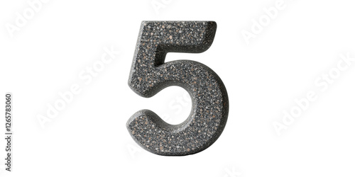 Concrete textured number 5 isolated on transparent background