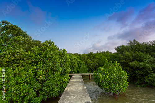 Concrete walkway in mangrove forest on tropical Koh Chang island