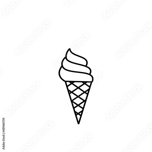 Cone ice cream, dessert ice sweet icon symbol in flat black line style, isolated on white background