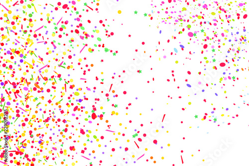 Confetti. Bright explosion. Texture with random geometric elements on isolated white. Abstract background. Pattern for design. Print for polygraphy, posters and banners. Greeting cards