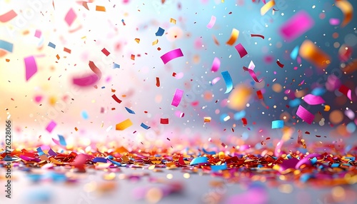 Confetti Celebration: A vibrant explosion of multicolored confetti floats mid-air, illustrating an atmosphere of joy, festivity, and momentous occasion.