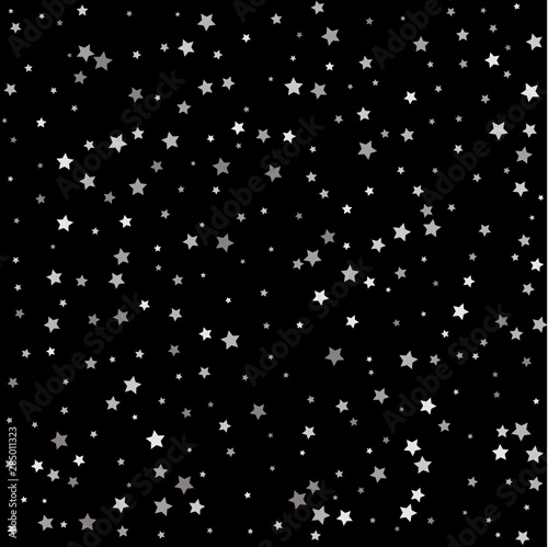 Confetti celebration. Silver flying stars confetti magic cosmic christmas vector.