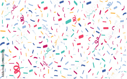 Confetti falling background. Birthday, weeding anniversary, Party, event, festive firework. Multicolored Carnival confetti on white background.