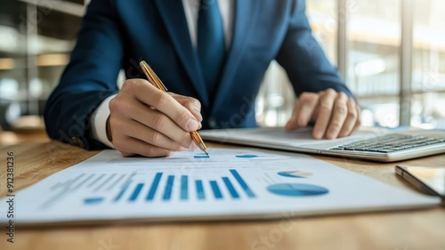 Confident Business Executive Analyzing Financial Data for Client Presentation