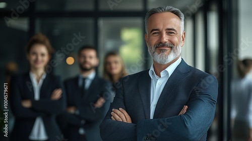Confident Business Leader with Team in Background