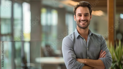 Confident Business Success: Cheerful Businessman in a Contemporary Office