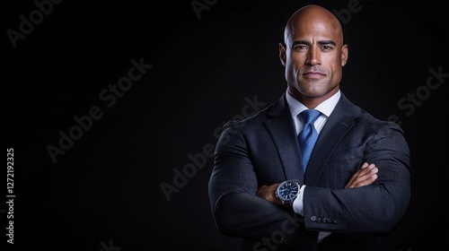 Confident businessman, arms crossed, dark background, corporate portrait (2)