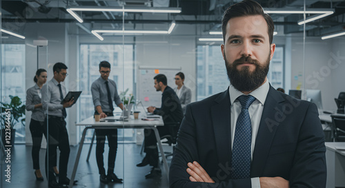 Confident Businessman Leader with Team in Modern Office