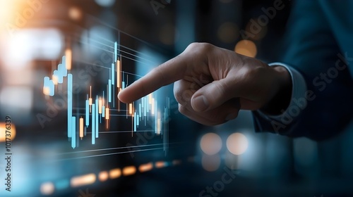 Confident Businessman Pointing at a Market Chart with Determination Showcasing Leadership and Financial Acumen in a Watercolor and Pastel Inspired Flat Design
