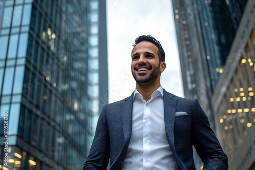 Confident Businessman Smiling in Urban Setting