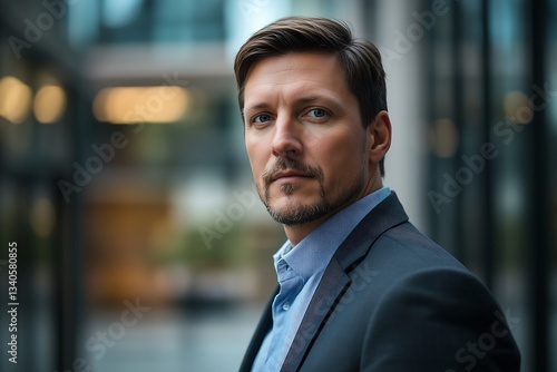 Confident Businessman Standing Outside Modern Office Building