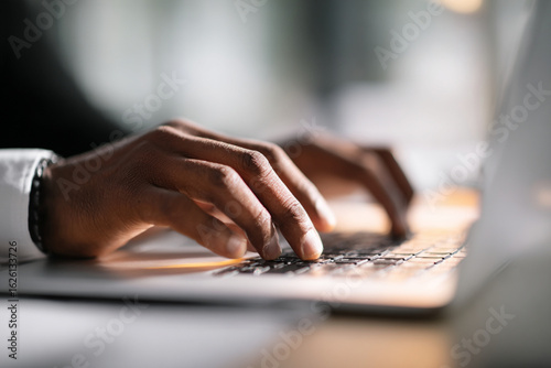Confident Businessman Typing on Laptop in Bright Modern Office