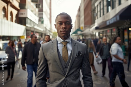 Confident businessman walking down city street