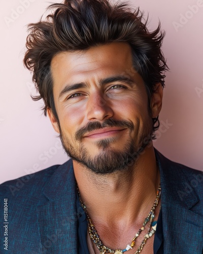 Confident businessman with a suit and a smile in a studio background, He looking at the camera