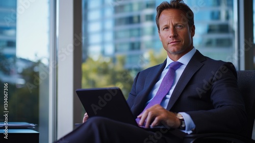 Confident businessman working on laptop in modern office