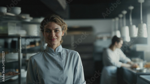 Confident Female Chef in Professional Kitchen. Generative AI image