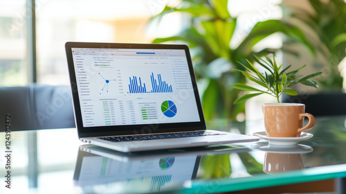Confident Indian Woman in Modern Office with Laptop and Charts