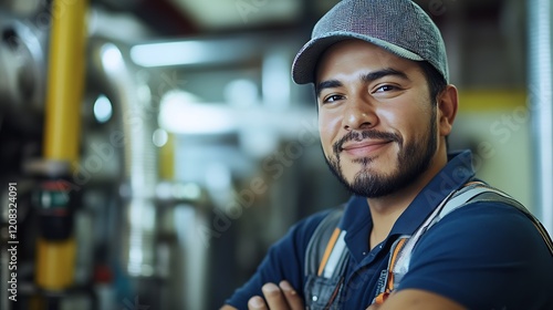 Confident Male Worker with Cap in Industrial Plant Environment : Generative AI