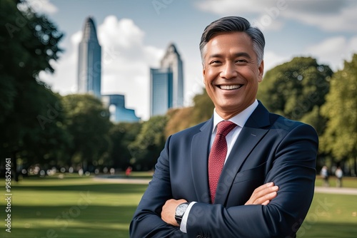 Confident Mature Business Owner Smiling in Park Portrait