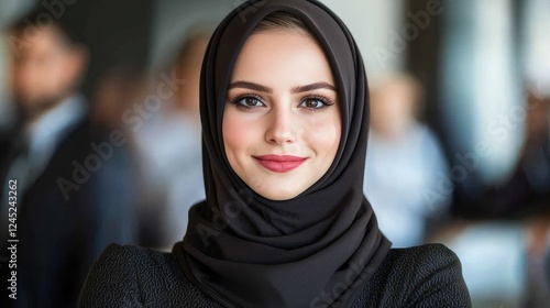 Confident Muslim businesswoman, office background