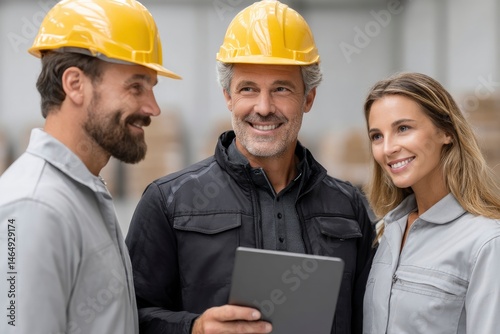 Confident Team Reviewing Project: Industrial Workers in Hard Hats