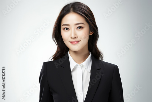 "Confident Thai Businesswoman: Smiling Professional in Black Business Clothes, Corporate Success"