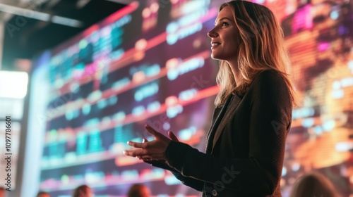 Confident Woman Delivering Keynote Speech at a Professional Event